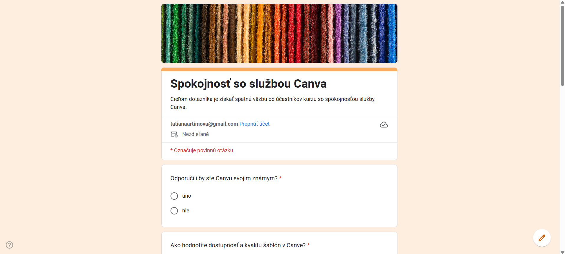 Tvorba našho dotazníka v google forms: